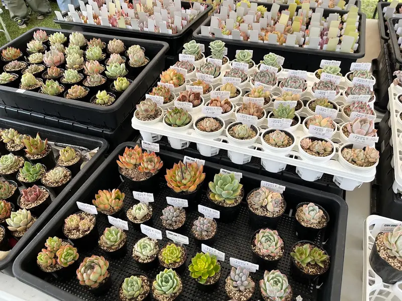 当日はさまざまなブースがありましたが、特に多かったのは多肉植物のコーナー。かわいい苗がずらりと並んでいて眼福です!植物のイベントだけあって、貴重な苗もそろっていました。