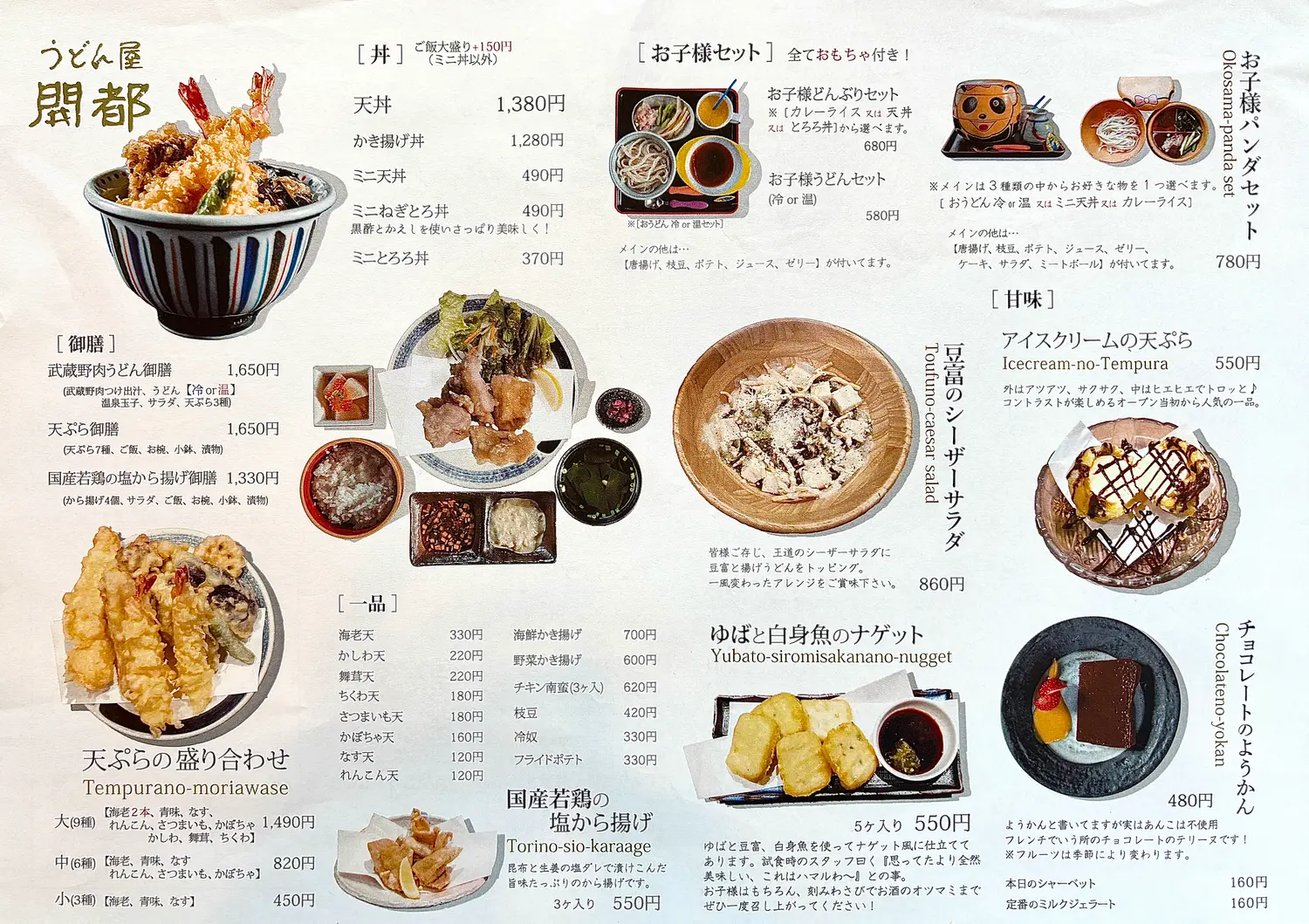 『開都』では「うどん」のみならず、バラエティに富んだメニュー構成になっています。詳しくはお店でご確認ください。