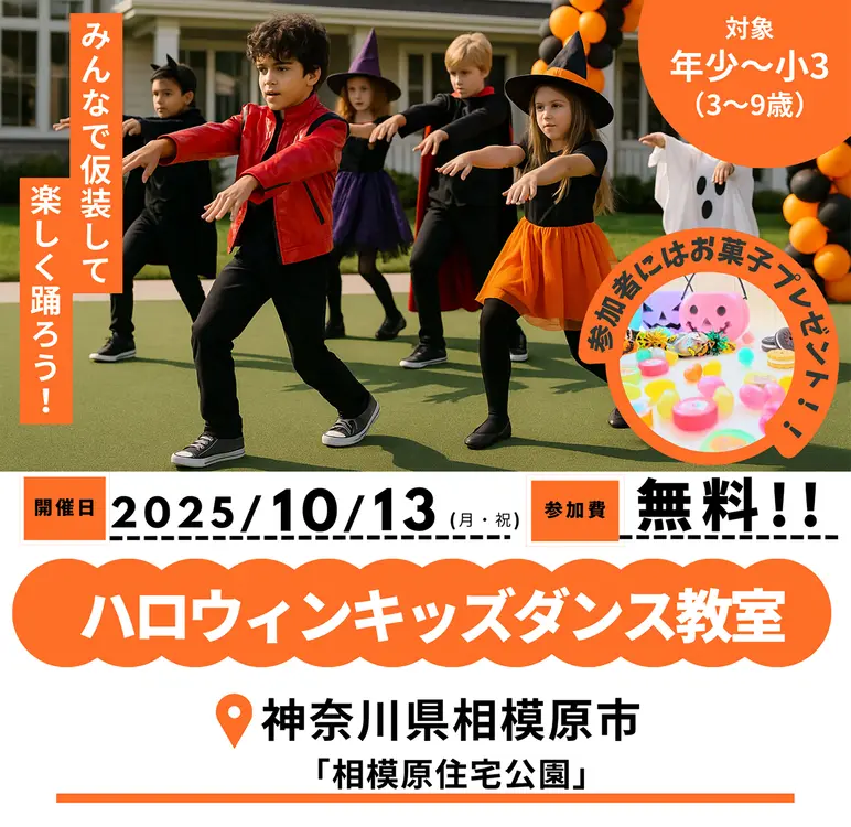 【10/13開催】仮装でダンス!お菓子ももらえる!『biima』の無料キッズダンス教室in相模原住宅公園