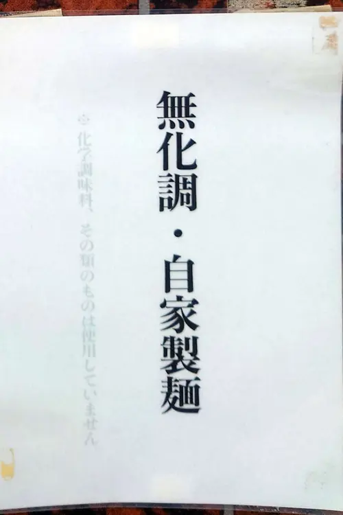 店内に掲示されたポスターからは、無化調(化学調味料無添加)であること、自家製麺であることがわかり、スープづくりへのこだわりがしっかり伝わってきます。