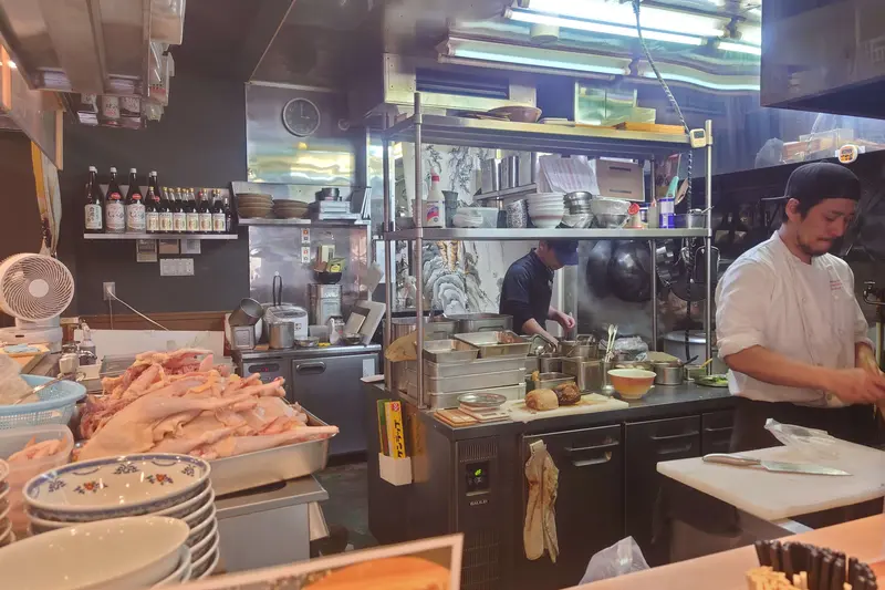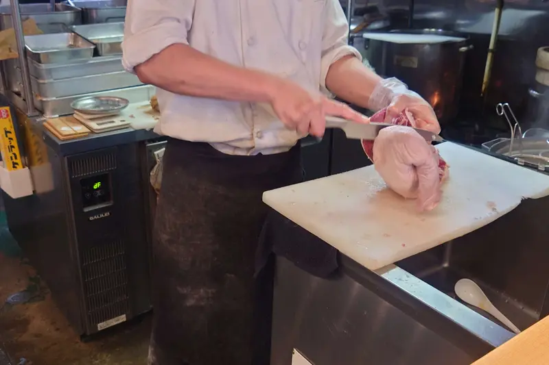 さらに厨房には丸鶏が積まれ、贅沢さと丁寧な仕込みをうかがわせます。