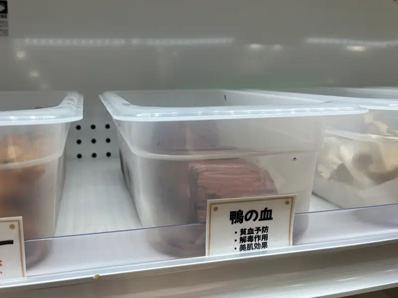 続いて、必ず食べようと思っていた『鴨の血』。鴨とありますが、中国ではアヒルの事を指します。ぎょっとする名前の食材ですが、実は「レバーのような風味のぷるぷるゼリー」といった感じで、臭みもほぼ無く食べやすいんです。